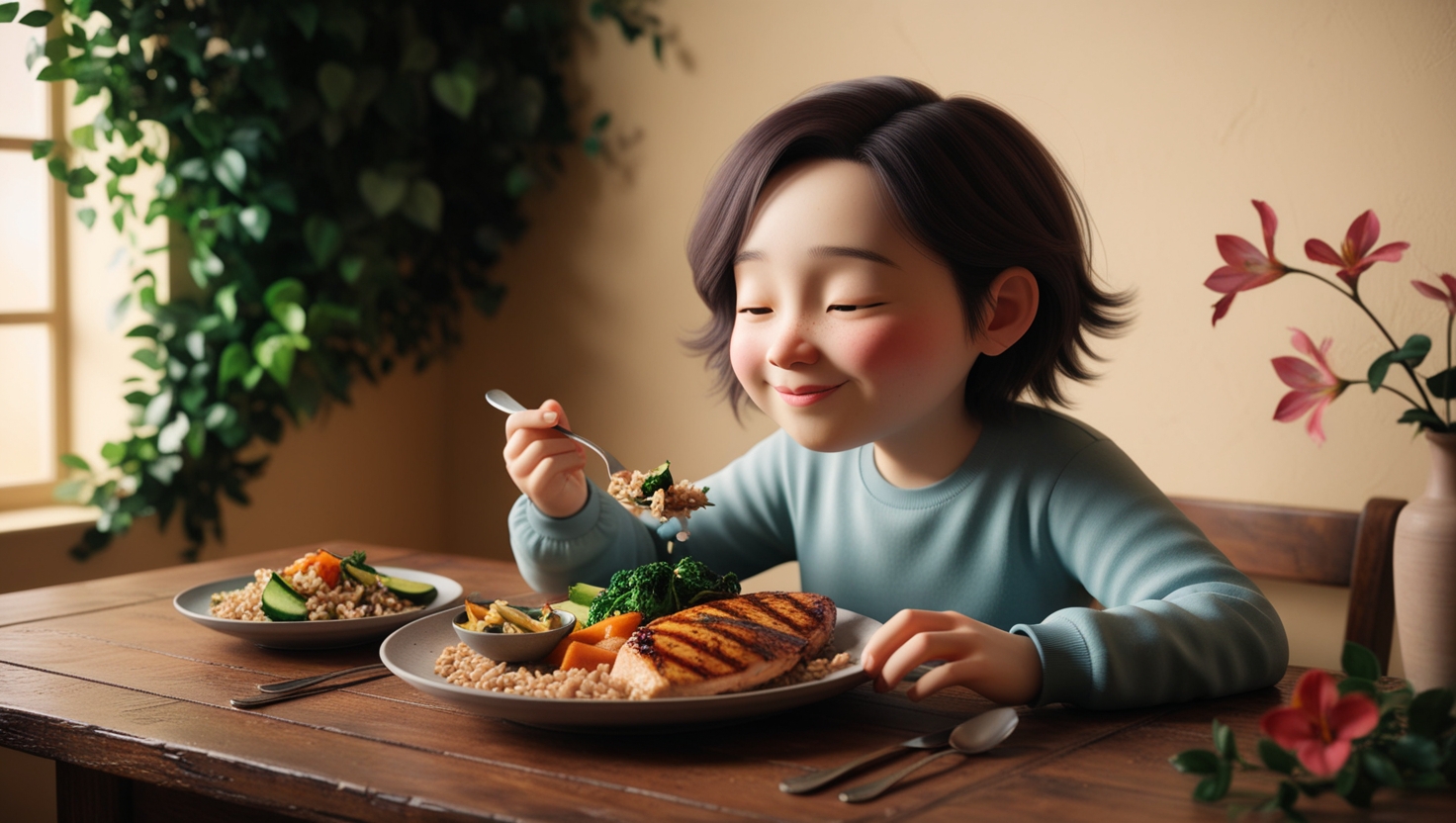Chewing food well not only improves digestion but also helps you feel fuller with less food. Try to chew each bite at least 20 times and enjoy the process.